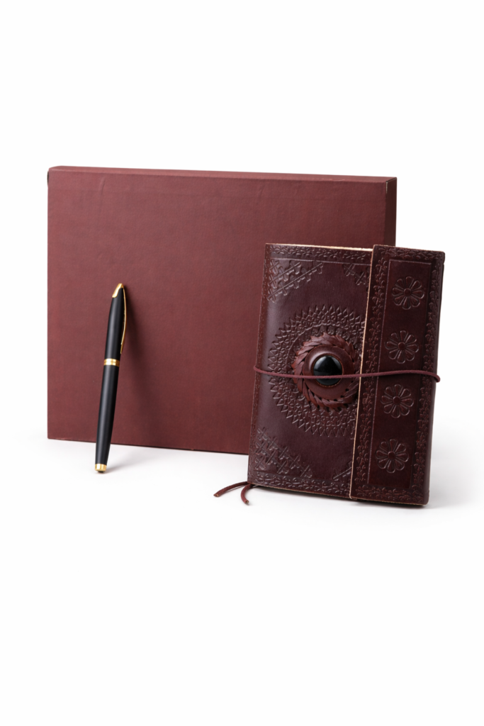 Premium Leather Diary & Pen Gift Set with Gift Box | Handmade Journal with Tiger Eye Stone | Thoughtful Gift for Every Occasion